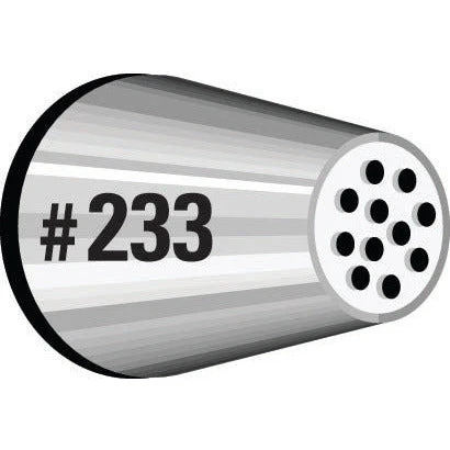 The Wilton Multi Opening Tip – #233 is a decorating tip that is ideal for doing lots of thin wispy streaks of frosting and is great for creating hair or grass for a large area in one go.